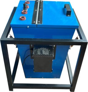 Este equipo es similar al anterior. Aplica pintura en polvo mediante una pistola de carga electrostática para que las partículas se adhieran a la pieza metálica La regulación de los parámetros se realiza por control digital que se pueden programar y guardar las distintas configuraciones para los distintos tipos de operaciones.